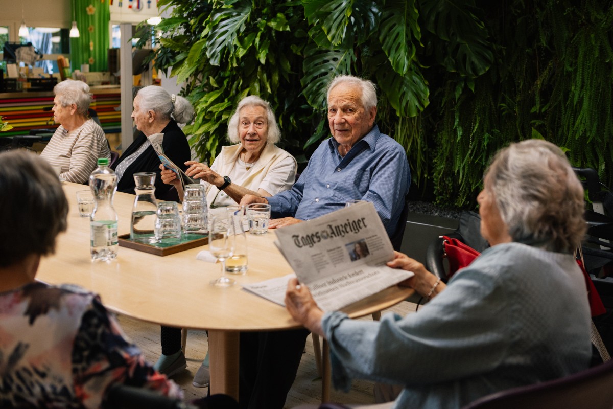 Nebst unserem Kernauftrag – professionelle Pflege und individuelle Betreuung unserer Bewohnenden – bereichern zusätzliche Angebote wie Coiffeur, Podologie und Physiotherapie den Alltag in der Grünhalde. Das Bistro 19 mit seinen hausgemachten Köstlichkeiten ist für Bewohnende und auswärtige Gäste ein beliebter Treffpunkt, und im Sommer lädt die grosszügige Gartenterrasse zum Plaudern und Verweilen ein. Veranstaltungen wie Lotto, Kino, Konzerte, Vorträge, Ausflüge und viele weitere Aktivitäten finden bei unseren Bewohnenden grossen Anklang. Ein heimeliges Holzfeuer im Cheminée und die einzigartige grüne Pflanzenwand im Foyer sorgen für Harmonie und Wohlbehagen. Unsere Dachterrasse mit Wintergarten bietet einen fantastischen Ausblick auf Zürich-Nord und vervollständigt den einmaligen Charakter der Grünhalde.