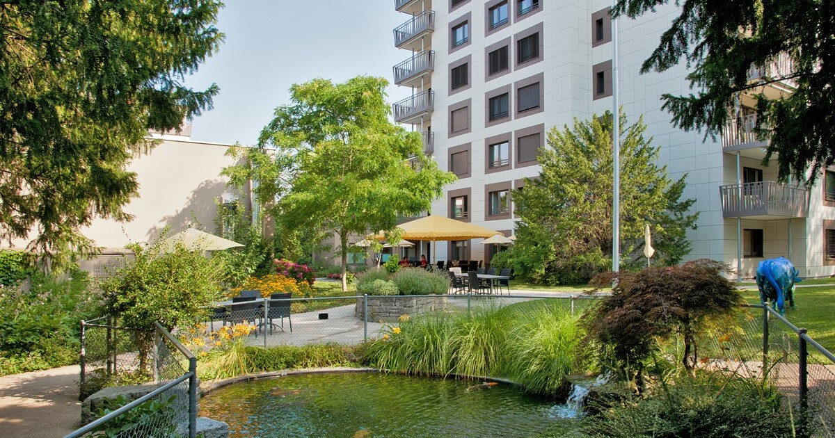 Das AVENTIN befindet sich an zentraler Lage in Zürich Hirslanden, beim Hegibachplatz. Es steht in einem der schönsten Zürcher Wohn- und Geschäftsquartiere und ist von einer parkartigen Gartenlandschaft mit altem Baumbestand umgeben.