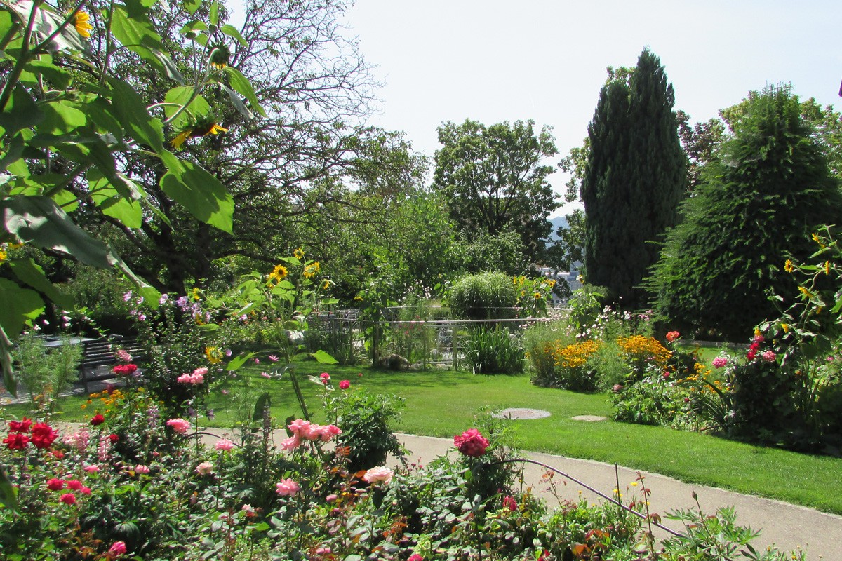 Unser Haus liegt oberhalb des Höngger Rebbergs an einer ruhigen, mit Bäumen gesäumten Quartierstrasse. Zum Haus gehört ein hindernisfrei zugänglicher, idyllischer Garten. Ein Biotop mit Springbrunnen bildet das Zentrum der mit Blumenbeeten umgebenen Anlage.
