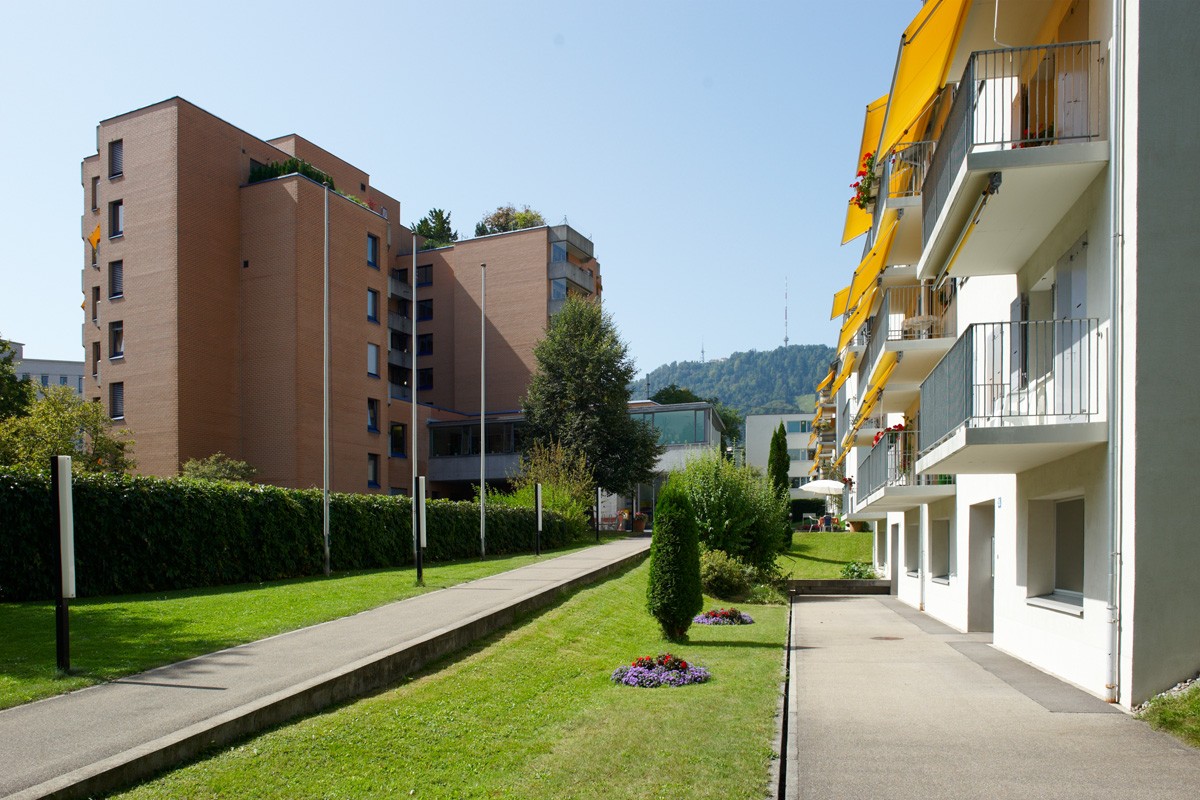 Hier wohnen Seniorinnen und Senioren selbständig und unabhängig in Mehrfamilienhäusern. Insgesamt bietet das Seniorama 24 komfortable Zweizimmerwohnungen und sechs Dreizimmerwohnungen an, alle mit eigenem Balkon, Nasszelle mit Dusche und eigener Küche. Mit dazu gehören persönliche Kellerabteile und die Mitbenützung der Waschküche.