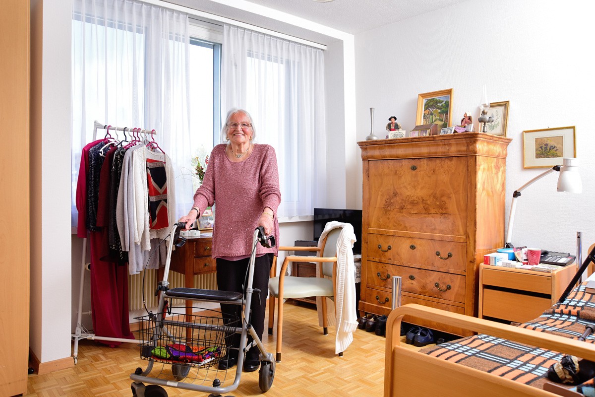 Im Häuptli finden 18 Menschen mit altersbedingten Einschränkungen ein wohnliches Zuhause. Hier können sie in einer kleinen Gemeinschaft die gewohnte Eigenständigkeit und Privatsphäre leben und trotzdem die benötigte Unterstützung und Pflege in Anspruch nehmen. Die Einzelzimmer verfügen über eine Nasszelle und teilweise einen eigenen Balkon.